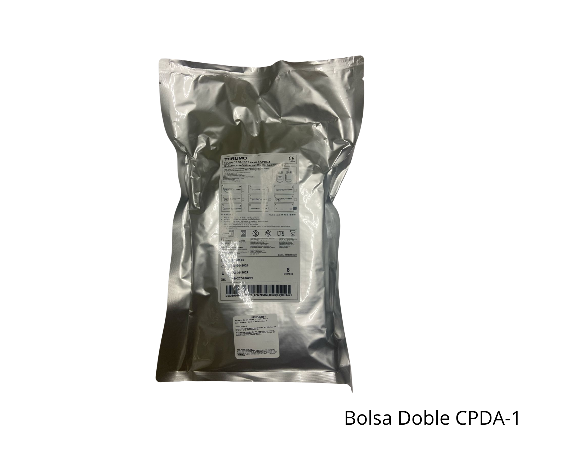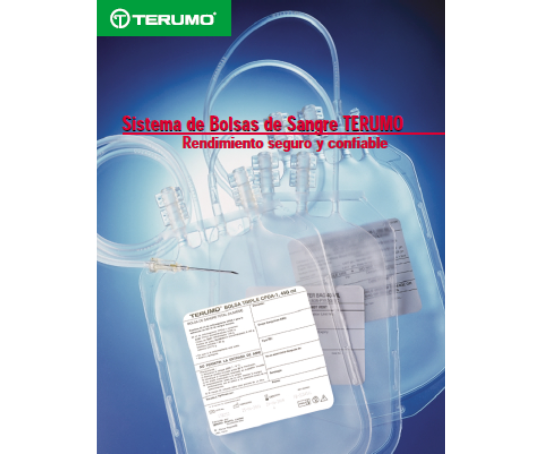 Bolsa doble recolectora de sangre Terumo con anticoagulante CPDA-1, capacidad de 450 ml. Diseñada para garantizar un proceso de recolección seguro, cómodo y eficiente, cumpliendo con altos estándares de calidad en bancos de sangre y unidades hospitalarias.