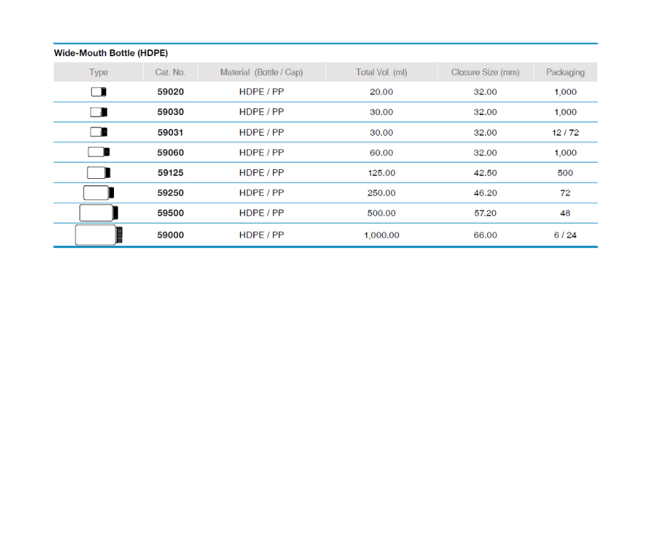 Fabricadas en HDPE, estas botellas son resistentes y adecuadas para almacenar y manipular productos químicos o muestras en estado líquido o sólido. Disponibles en capacidades de 20 a 1000 ml.