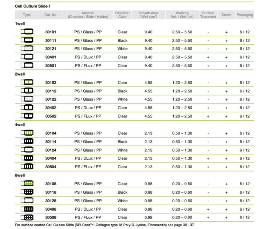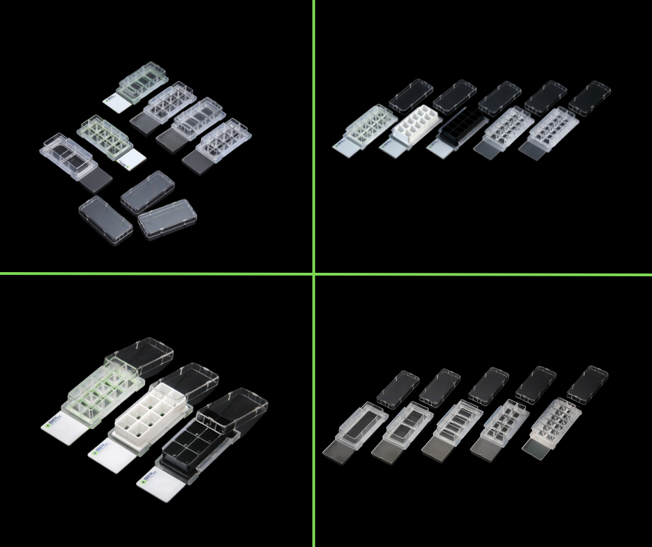 Ofrecemos cámaras con distintos números de pocillos y colores para adaptarse a diferentes aplicaciones. Además, las nuevas superficies de cultivo, como DLux y FLux, han mejorado la eficacia de estos portaobjetos.