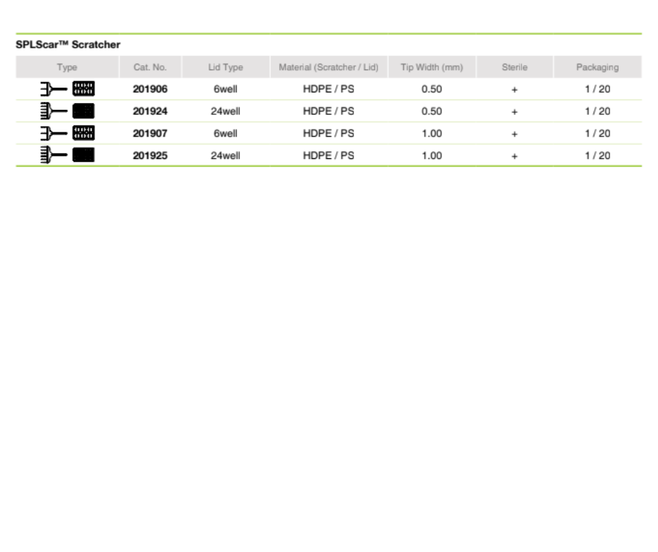 El SPLScar™ Scratcher garantiza resultados uniformes y repetibles en investigaciones sobre metástasis, cicatrización y migración celular. Este dispositivo incluye una tapa con orificios idénticos y un rasgador, disponible para placas de 6 o 24 pocillos.