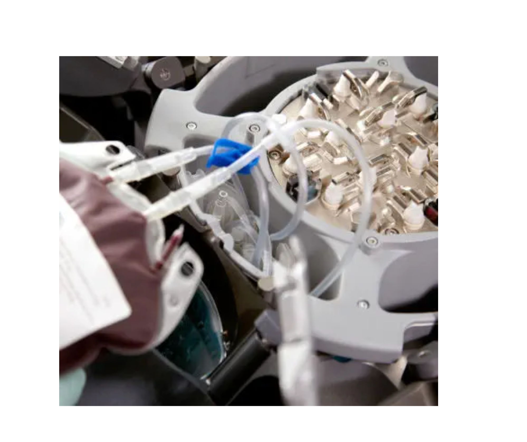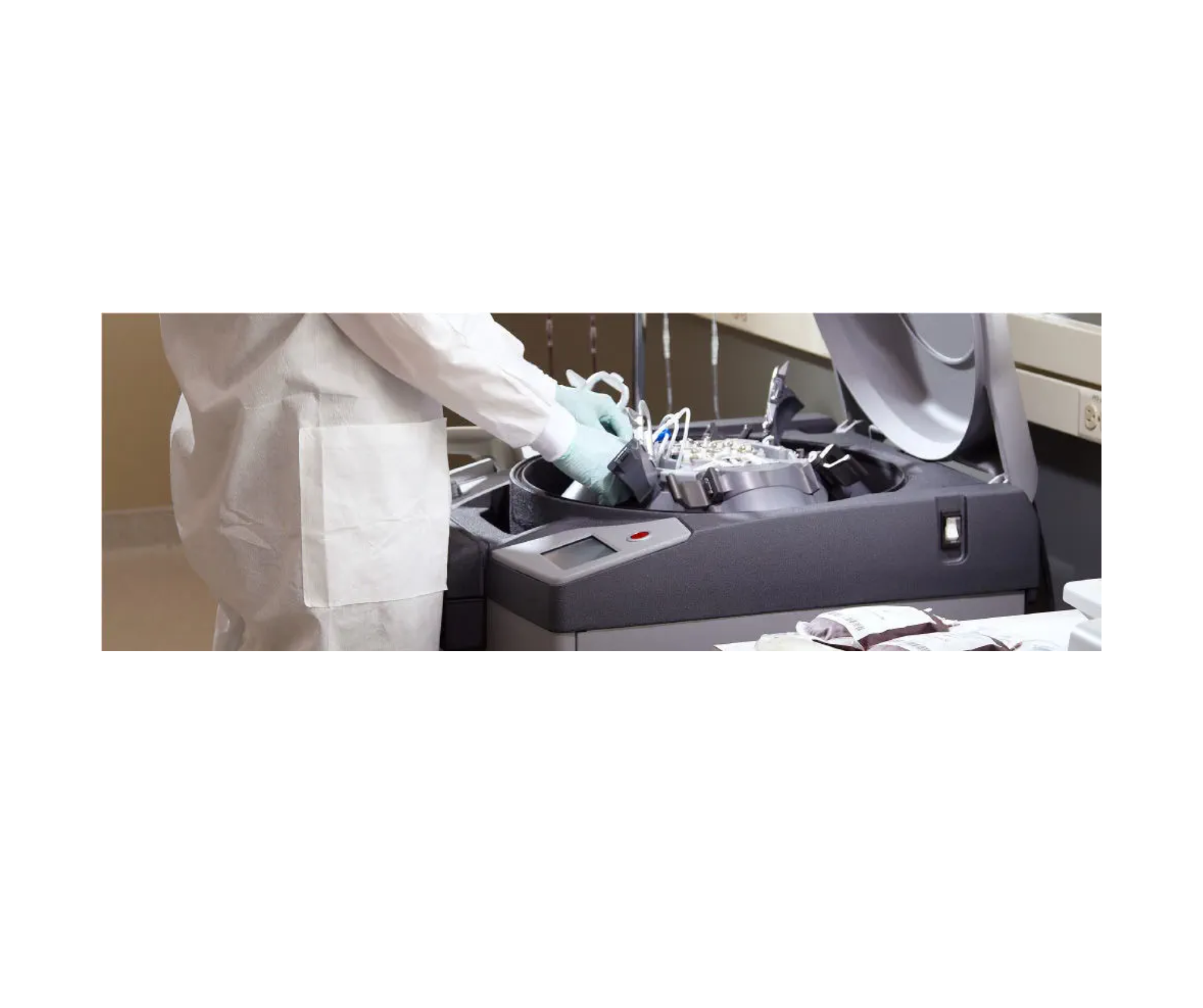 Dispositivos como la soldadora TSCD-II para tareas como agrupación, leucorreducción o lavado celular.