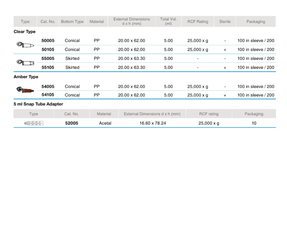 - Adaptador de tubo de 5 ml para rotor de 15 ml (N.º de cat. 52005).